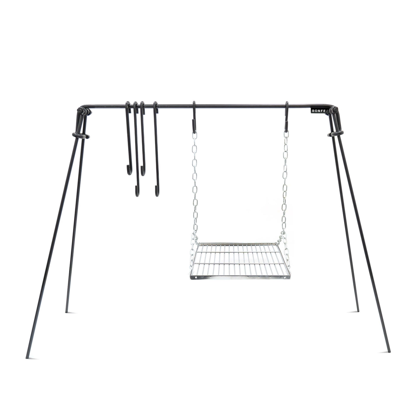 The square design provides ample grilling space and works seamlessly with BonBridge's adjustable chain suspension system.